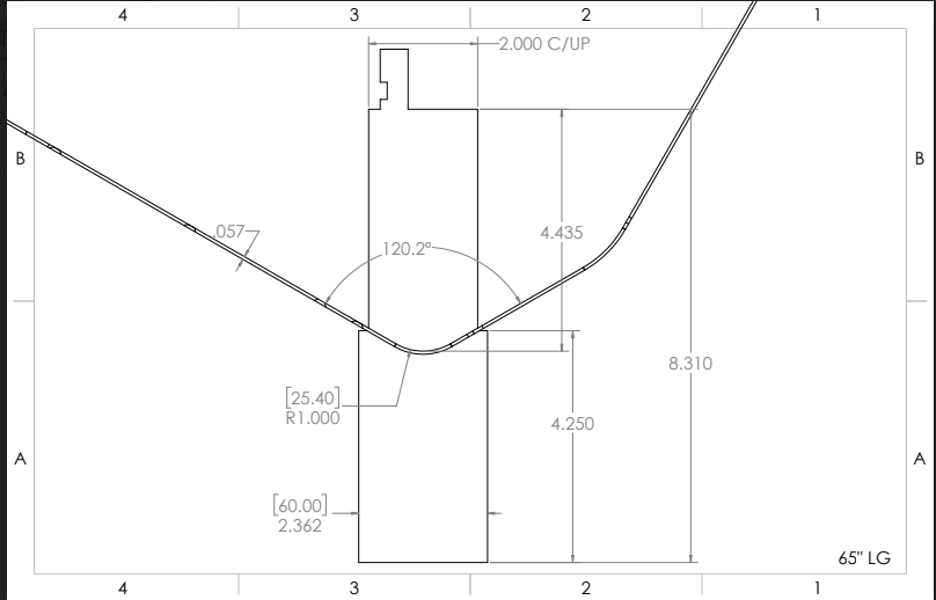 One job we recently completed was .062 505-H32 Alum with bends that were 63” long. Most fabricators can bump for parts that are less than 24” wide. As the length of the bend gets larger, the challenge in holding a straight uniform angle dramatically increases.